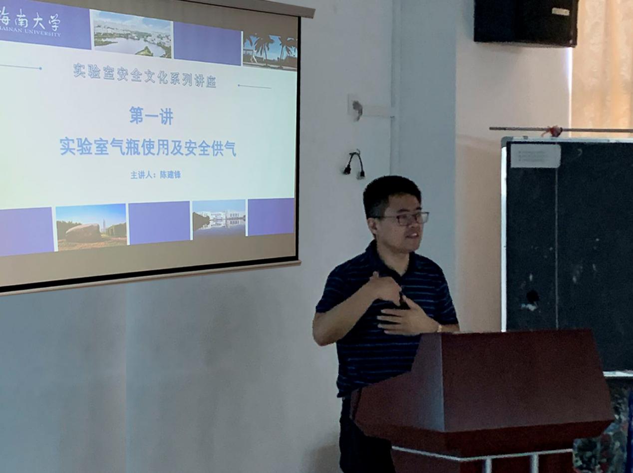 为进一步贯彻落实党中央、国务院和海南省关于安全生产的各项决策部署要求,切实做好我校实验室安全宣传教育工作,预防和杜绝实验室安全事故的发生,实验室与设备管理处邀请优秀民营企业家南京诚创科技系统有限公司总经理陈建锋先生,于9月10日下午,在海甸校区研发楼710室做关于“实验室气瓶使用及安全供气”专题讲座,全校相关学院师生及实验室技术安全督查员40余人参加讲座。讲座由实验室与设备管理处副处长刘艳凤主持。