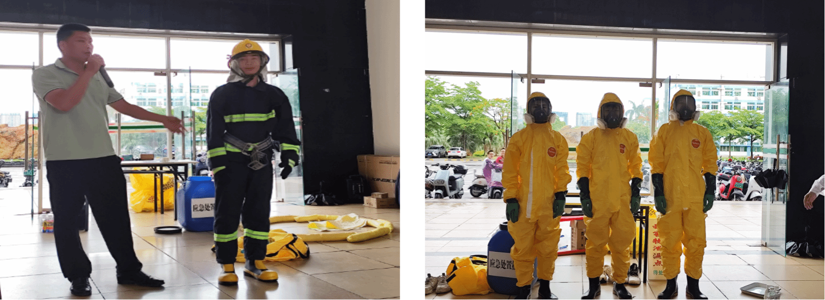 本次培训共分三个阶段:首先由保卫处王智老师作消防应急处置宣讲,从易燃易爆物品区分、火场逃生要点提示、楼宇环境布局熟知等三个角度强调提升消防安全意识和素养的重要性;随后实验室与设备管理处林友联老师协同10名学生安全员进行了一场危化品泄漏应急处置的演练;活动最后,保卫处林德鑫老师做各类消防器材的使用培训。