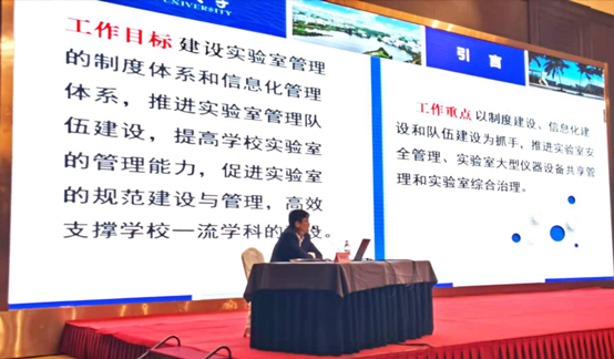 会上,黄绵佳处长作为海南省高等学校实验室工作委员会新任理事长,向各会员单位做了海南省高等学校实验室工作委员会2021年工作设想,并以“规先于建,管寓于服,william威廉亚洲官方实验室工作的探索与实践”为题做主旨发言。他分别从william威廉亚洲官方实验室与设备管理工作概况;统筹规划,过程监管,实验室管理工作全面展开;执行政策,转变意识,创建安全的实验环境;统一论证,开放共享,大型仪器管理工作进入新篇章;实验室与设备管理工作的总结与思考等几个方面进行了介绍,发言引经据典,妙语横生,会场气氛热烈。
