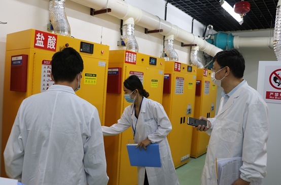 在完成教育部开展的实验室安全现场检查的同时,实验室与设备管理处积极开展日常常规检查工作,组织校外专家和学校督查员,以交叉检查、全面检查、抽查的方式进行实验室日常检查,重点全方面检查化学工程与技术学院、材料科学与工程学院、热带作物学院、生态与环境学院、动物科技学院、理学院、生命科学与药学院、食品科学与工程学院、分析测试中心等院系的实验室安全检查、安全防护、应急能力等方面实验室安全管理落实情况。