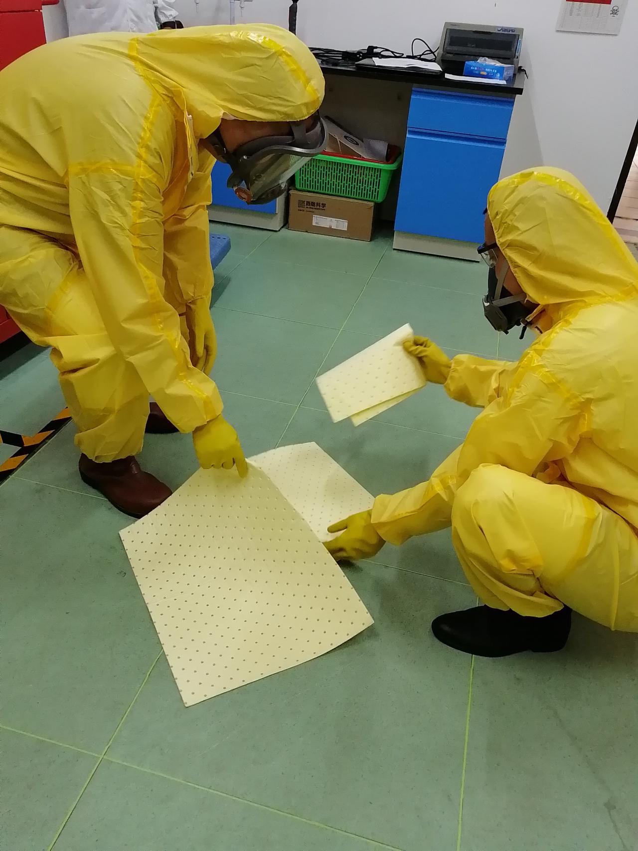 危化品暂存库和危废暂存柜的7名管理人员参加了本次演练。通过演练,管理人员学会了突发事故的应急处理程序,掌握了应急处置柜内各种工具的使用性能,更懂得了遇事不慌,沉着冷静,先救人后处置的道理。