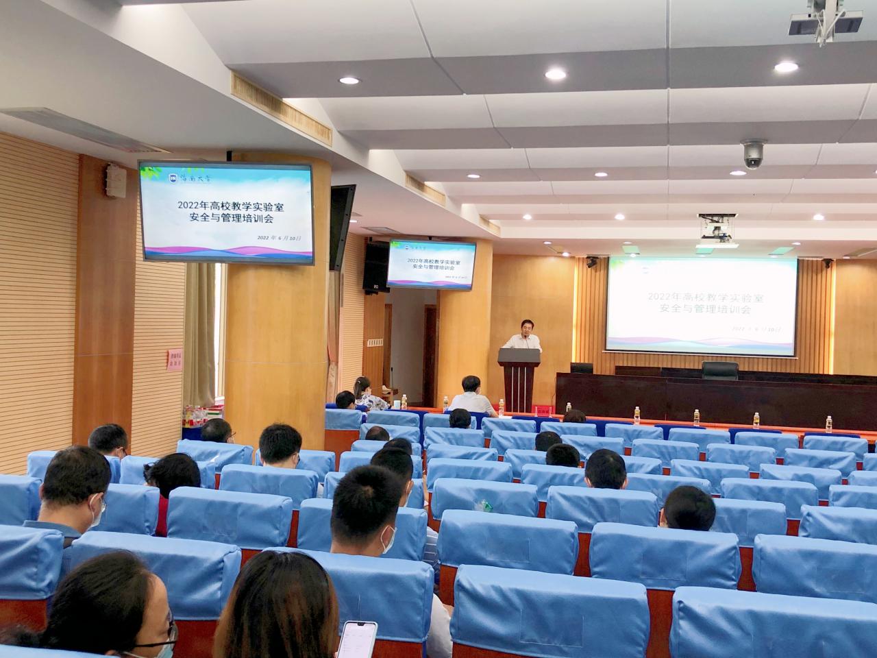 为进一步提升学校教学实验室安全管理水平,根据《教育部高等教育司关于举办高校教学实验室安全与管理培训班的通知》文件要求,6月10日上午,我校在行政楼一楼报告厅设置了视频会议主会场。学校党委常委、副校长聂清斌,实验室与设备管理处等相关职能处室负责人,各院级单位领导,学校实验室技术安全督查员及相关人员50余人参加主会场线上培训会。同时,各相关单位也自行组织安排实验中心主任、实验室主任、实验室安全管理人员、实验室安全员等300余人参加了培训。
