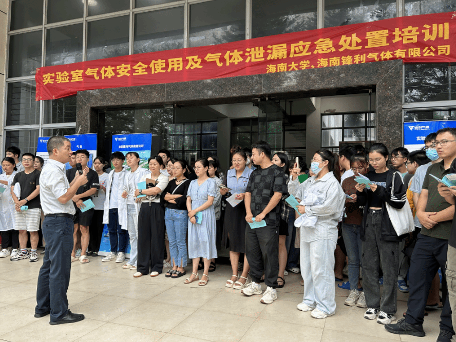 首先,实验室与设备管理处杨海峰副处长(挂职)为师生剖析各类气体的危害根源,让师生们认识到气体泄漏的危害以及正确使用气瓶的重要性。接着,由海南锋利气体有限公司崔忠辉总监介绍了各类气瓶专业知识和气瓶在操作、存储、使用中的要求,现场演示气瓶使用操作的全过程并详细讲解了注意要点。