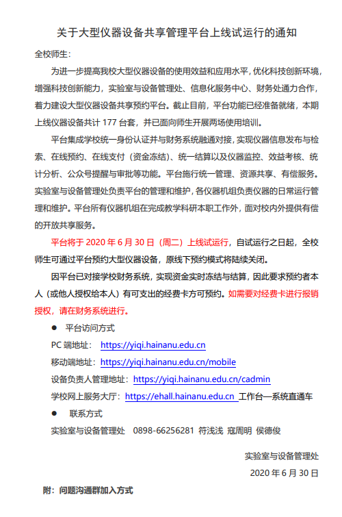 关于大型仪器设备共享管理平台上线试运行的通知